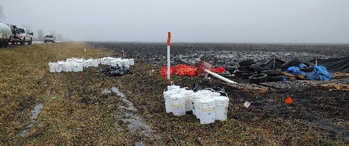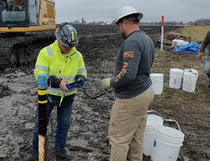 Injection was delayed until excavation was complete. During the second visit, residual water was identified and treated with a 10% corrosion inhibitor solution formulated with ZERUST® Zerion™ FVS-S15 Corrosion Inhibitor Powder and ZERUST® Zerion™ PGH-300 and PGH-400 Gel Powders, injected in 250-gallon intervals using a 2-inch Eductor system. A total of 975 gallons (3,690 liters) was applied, displacing ~5 gallons (19 liters) of water. The ER Probe and Pressure Relief Valve were installed, and site personnel received IDS training.